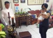 翊忽然生氣的手指右邊的佛桌說:「你不要坐太過來,這裡不能坐了,給仙佛坐滿了!」。○翊才三歲