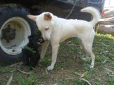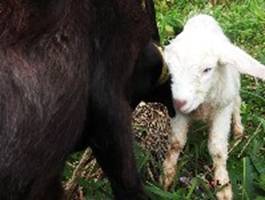 **我們在臥雲山養的三隻小母羊,在昨天其中一隻黑羊忽然生下一隻白色小羊,昨天是這次法會的