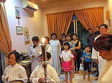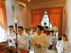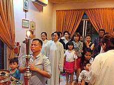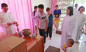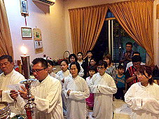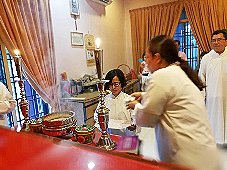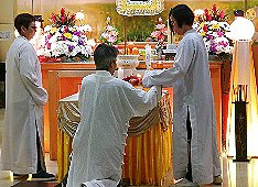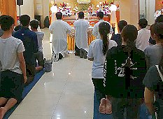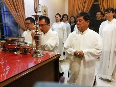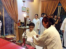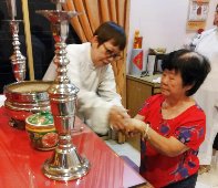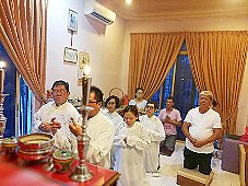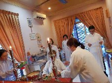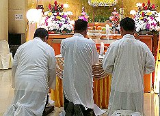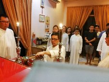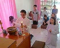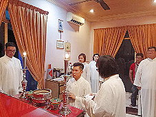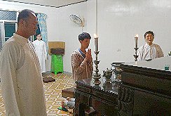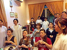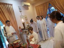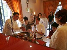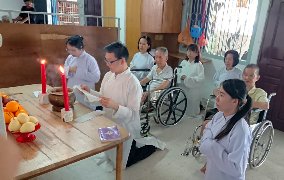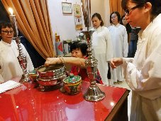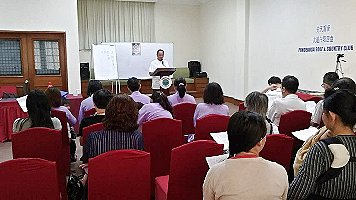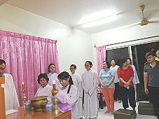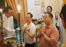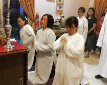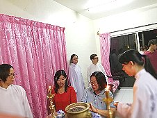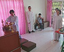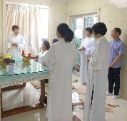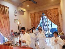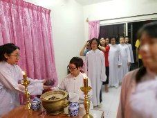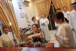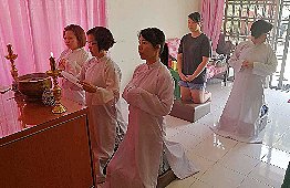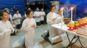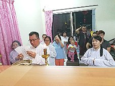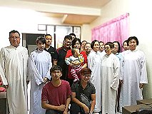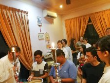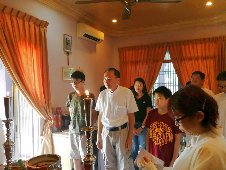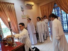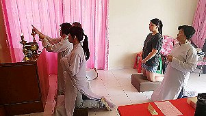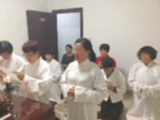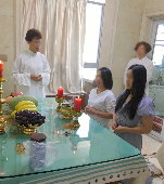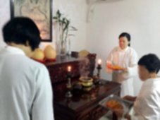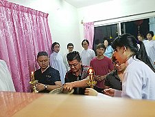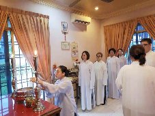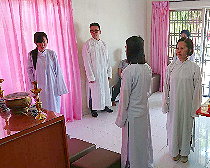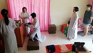 那邊的道親們利用法乘長老道長急匆匆的一天到了 那兒,即刻相聚佛堂參研經典和禮節。真誠又純潔的心