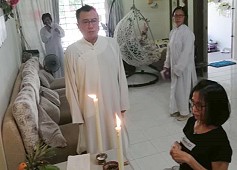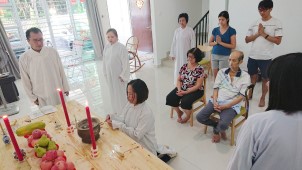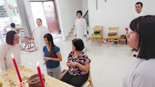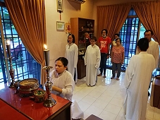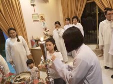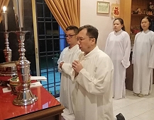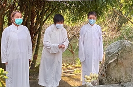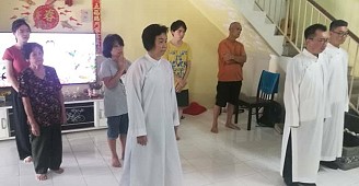 兩位道親在那兒。弟子心想,今晚會有喜事?我們 一行到了法嬋道師家裏,慢慢又來了好幾位道親,果真