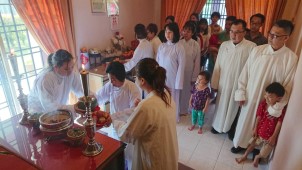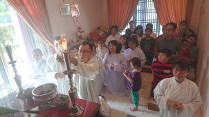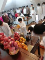 當晚授命聖職完成時,外面就立刻響起鞭炮聲,師 尊大人開示:「今天是除夕夜,現在才十點多,還不到