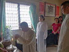 **這是這位歸空修子(道親來發的父親)告別式當天,幾位聖職人員去幫忙送別儀式的現場。有道親問:一般修子歸空也有仙佛像這樣來接引嗎?