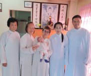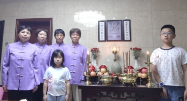 特別疼愛的孫子(即弟子後學的兒子)勸她來求道,結果她很順從就來求道了。求道那天,弟子後學的婆婆剛開始還要人攙扶著(包括走路和跪拜都需