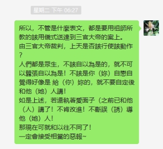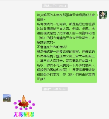 師母大人也好像感覺到了弟子們好像出了什麼狀況,就在當天晚上(農曆十一月十一日)10點多百忙之中急切發來訊息(“那邊大家都平安吧?”)