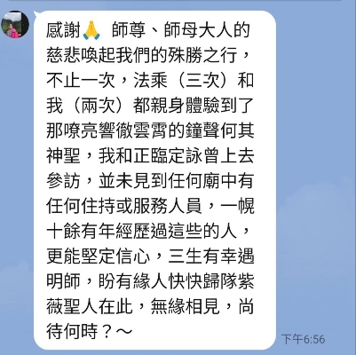 來到了真天命道場,跟隨到了真天命住世祖師的門下修行。弟子後學真的很感謝 天恩師德! 弟子後學 倪美麗 敬錄西元2024年2月17日
