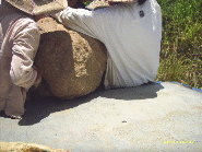 用,大石要擺得正,須靠中石、小石,甚至細砂泥土來